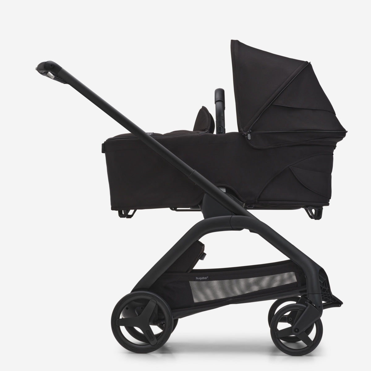 Bugaboo Dragonfly kinderwagen met wieg en stoel complete black + cupholder + seatliner showroommodel